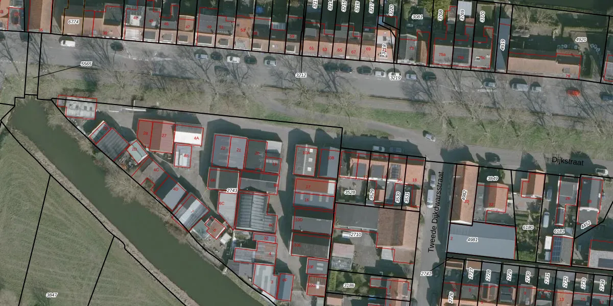Het perceel waarop Sluishoek 30 staat heeft een oppervlakte van 3615 m². Dit is een zeer groot perceel. De perceeloppervlakte wordt geregistreerd door het Kadaster. Gedetailleerde informatie over de maten van dit perceel kunt u vinden in het rapport Kadastrale kaart met maatvoering van Sluishoek 30.