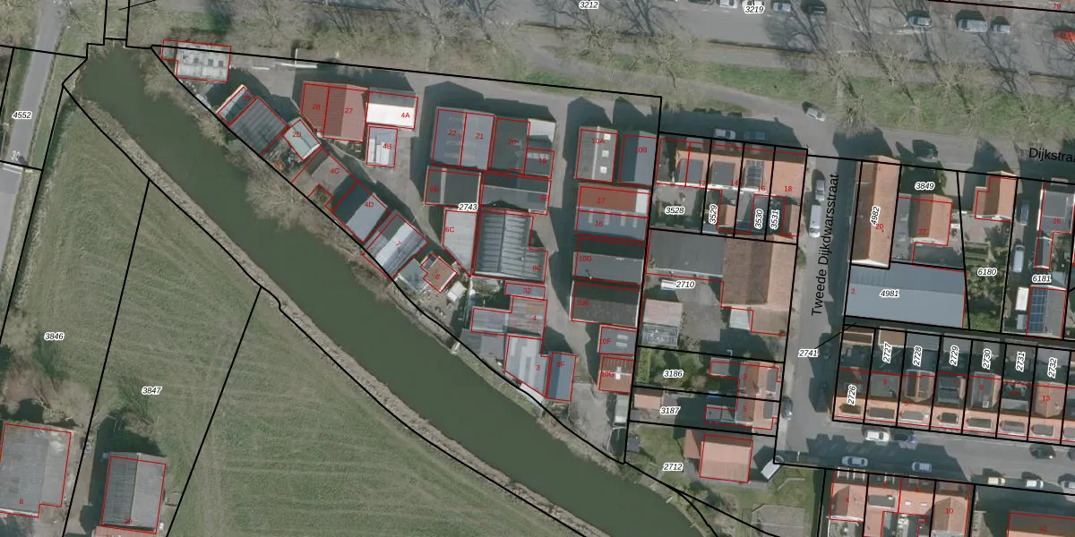 Het perceel waarop Sluishoek 31 staat heeft een oppervlakte van 3615 m². Dit is een zeer groot perceel. De perceeloppervlakte wordt geregistreerd door het Kadaster. Gedetailleerde informatie over de maten van dit perceel kunt u vinden in het rapport Kadastrale kaart met maatvoering van Sluishoek 31.