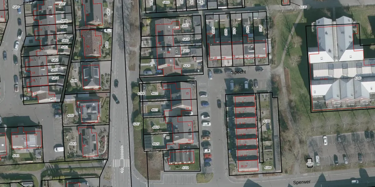 Het perceel waarop Specht 12 staat heeft een oppervlakte van 279 m². Dit is een middelgroot perceel. De perceeloppervlakte wordt geregistreerd door het Kadaster. Gedetailleerde informatie over de maten van dit perceel kunt u vinden in het rapport Kadastrale kaart met maatvoering van Specht 12.