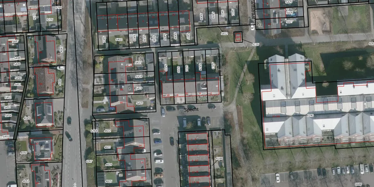 Het perceel waarop Specht 6 staat heeft een oppervlakte van 170 m². Dit is een middelgroot perceel. De perceeloppervlakte wordt geregistreerd door het Kadaster. Gedetailleerde informatie over de maten van dit perceel kunt u vinden in het rapport Kadastrale kaart met maatvoering van Specht 6.