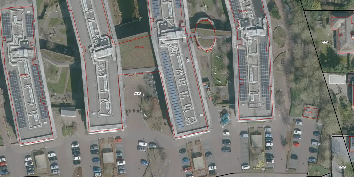 Het perceel waarop het adres ligt is SMD00-B-6534. De afkorting 'SMD00' staat voor kadastrale gemeente Sommelsdijk. De oppervlakte van het perceel is 2,9 ha. Dat is groter dan gemiddeld in Sommelsdijk, waar de gemiddelde perceeloppervlakte op 5165,91 m² ligt. De grootste perceeloppervlakte in de kadastrale gemeente is 55,8 ha. De kleinste oppervlakte bedraagt 1 m². Op het perceel liggen in totaal 161 adressen. De huidige grenzen van het perceel zijn digitaal in de Basisregistratie Kadaster (BRK) geregistreerd op 23-11-2023.