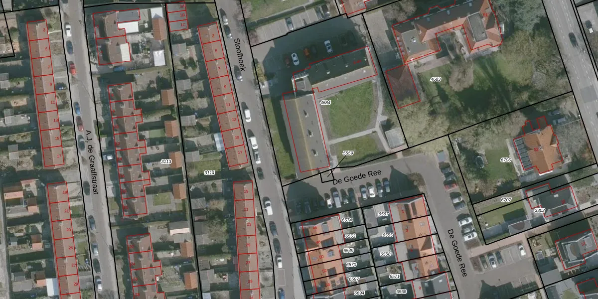 Het perceel waarop Stoofhoek 16 staat heeft een oppervlakte van 2015 m². Dit is een zeer groot perceel. De perceeloppervlakte wordt geregistreerd door het Kadaster. Gedetailleerde informatie over de maten van dit perceel kunt u vinden in het rapport Kadastrale kaart met maatvoering van Stoofhoek 16.