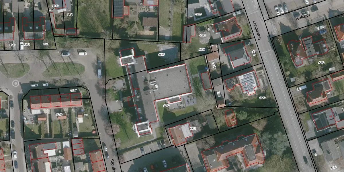 Het perceel waarop Stoofhoek 2-19 staat heeft een oppervlakte van 2645 m². Dit is een zeer groot perceel. De perceeloppervlakte wordt geregistreerd door het Kadaster. Gedetailleerde informatie over de maten van dit perceel kunt u vinden in het rapport Kadastrale kaart met maatvoering van Stoofhoek 2-19.