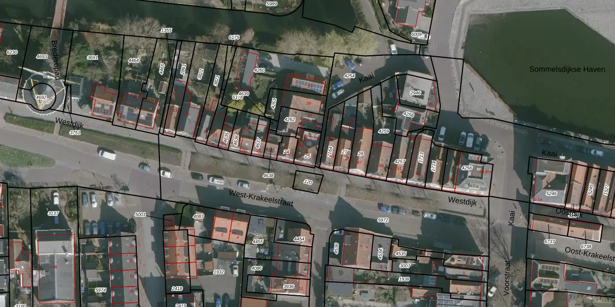 Het adres ligt op het perceel SMD00-B-25, dat zich in de kadastrale gemeente Sommelsdijk bevindt. De gemiddelde perceelgrootte in Sommelsdijk is 5165,91 m². Dit perceel is kleiner: de perceeloppervlakte bedraagt 81 m². Het grootste perceel in de kadastrale gemeente is 55,8 ha. Het kleinste perceel heeft een oppervlakte van 1 m². Op het perceel bevinden zich geen andere adressen. In de Basisregistratie Kadaster (BRK) werden de grenzen van het perceel geregistreerd op 07-07-2004.