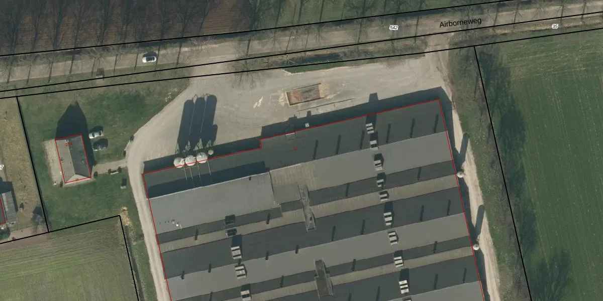 Het perceel waarop Airborneweg 27 staat heeft een oppervlakte van 3,1 ha. Dit is een zeer groot perceel. De perceeloppervlakte wordt geregistreerd door het Kadaster. Gedetailleerde informatie over de maten van dit perceel kunt u vinden in het rapport Kadastrale kaart met maatvoering van Airborneweg 27.