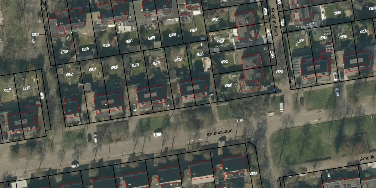 Het perceel waarop Amerikalaan 48 staat heeft een oppervlakte van 383 m². Dit is een groot perceel. De perceeloppervlakte wordt geregistreerd door het Kadaster. Gedetailleerde informatie over de maten van dit perceel kunt u vinden in het rapport Kadastrale kaart met maatvoering van Amerikalaan 48.