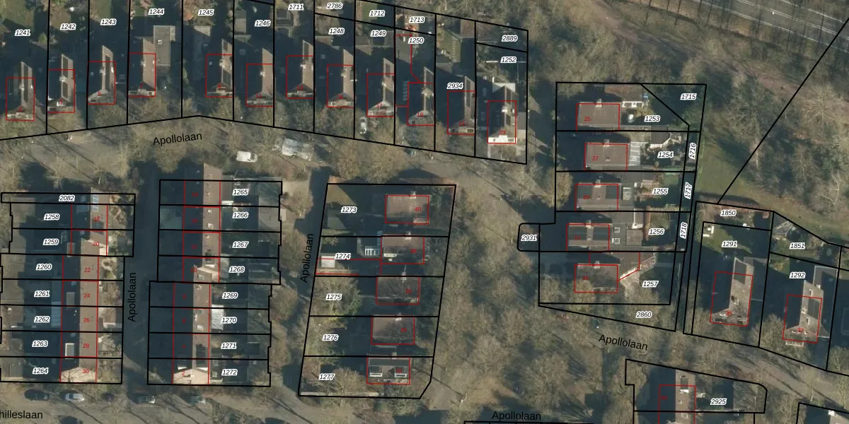 Apollolaan 40 is gelegen op kadastraal perceel SON00E1273. Deze kadastrale aanduiding is uniek en wordt gebruikt door het Kadaster om eigendomsrechten en andere zakelijke rechten vast te leggen. Het perceel maakt onderdeel uit van de kadastrale gemeente Son en Breugel.