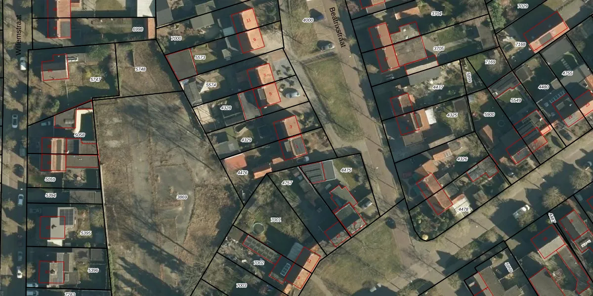 Beatrixstraat 1 is gelegen op kadastraal perceel SON00C4476. Deze kadastrale aanduiding is uniek en wordt gebruikt door het Kadaster om eigendomsrechten en andere zakelijke rechten vast te leggen. Het perceel maakt onderdeel uit van de kadastrale gemeente Son en Breugel.
