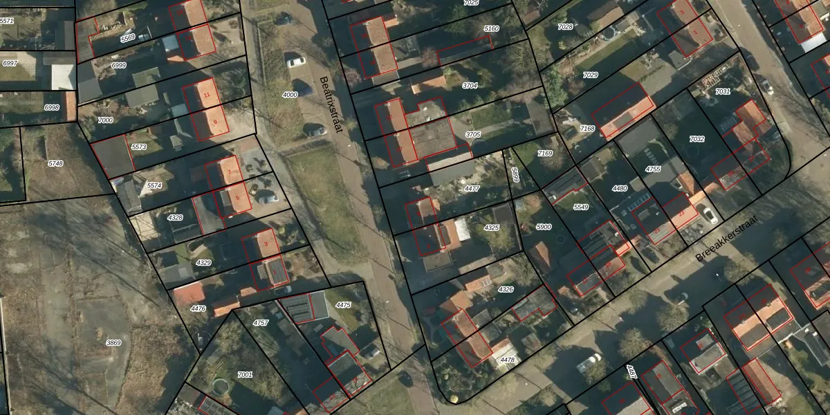 Beatrixstraat 8 is gelegen op kadastraal perceel SON00C4477. Deze kadastrale aanduiding is uniek en wordt gebruikt door het Kadaster om eigendomsrechten en andere zakelijke rechten vast te leggen. Het perceel maakt onderdeel uit van de kadastrale gemeente Son en Breugel.