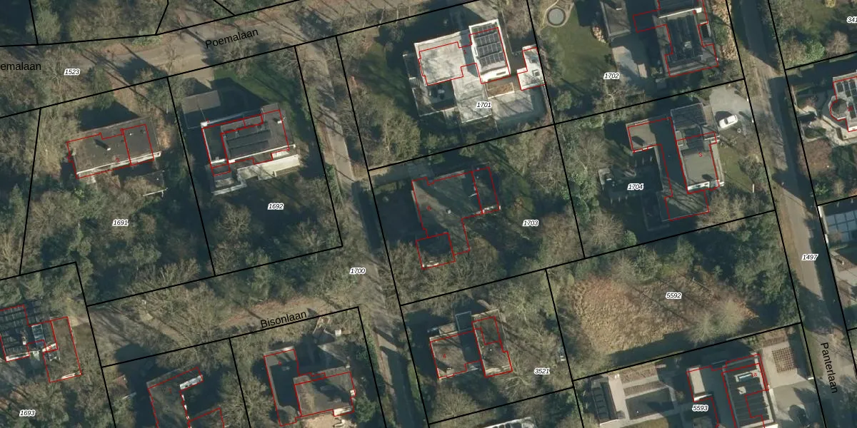 Gebruik de zoekbalk of klik op een perceel voor informatie over de adressen binnen dit perceel.