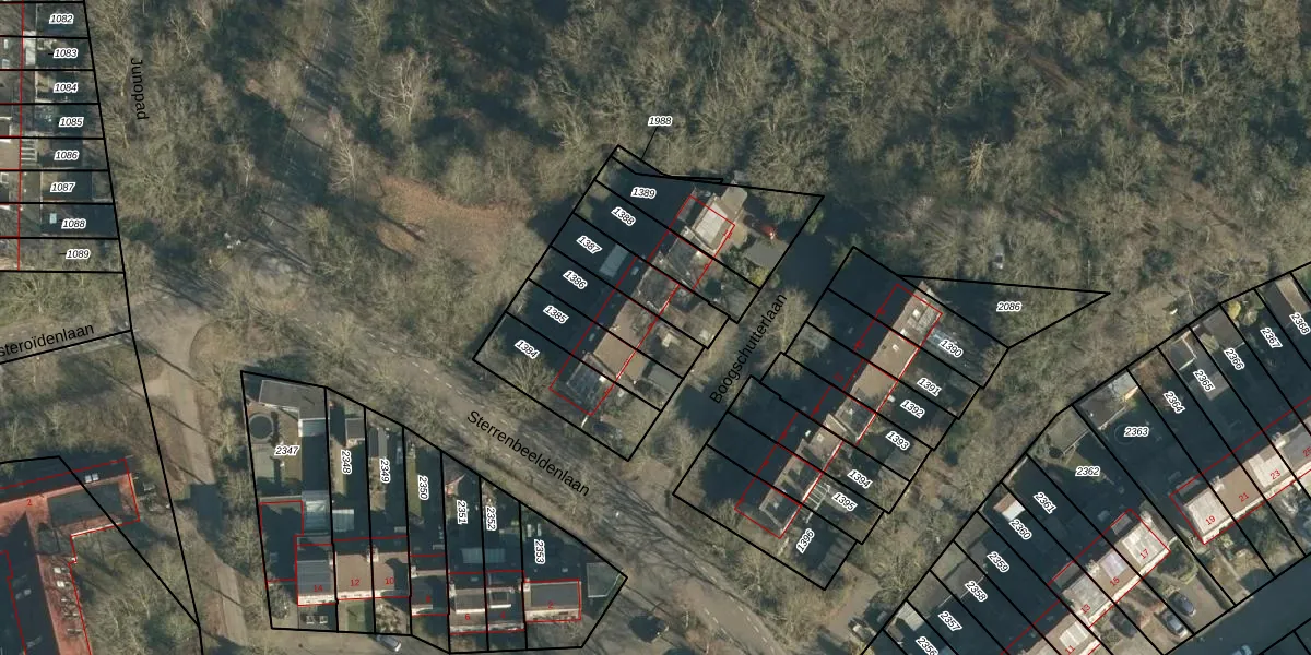 Boogschutterlaan 5 is gelegen op kadastraal perceel SON00E1386. Deze kadastrale aanduiding is uniek en wordt gebruikt door het Kadaster om eigendomsrechten en andere zakelijke rechten vast te leggen. Het perceel maakt onderdeel uit van de kadastrale gemeente Son en Breugel.