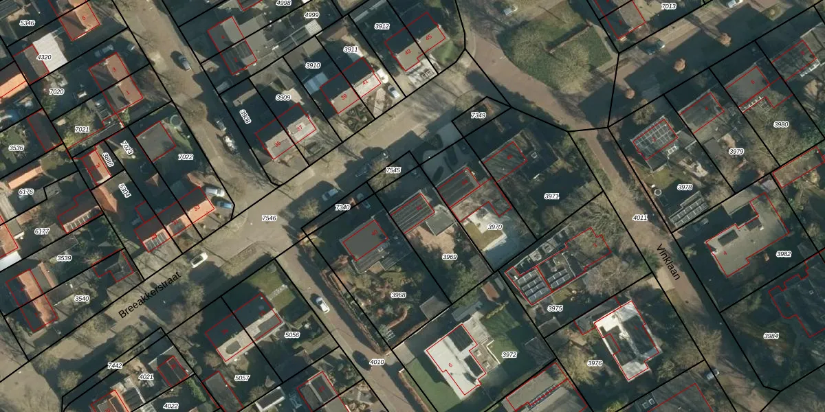 Gebruik de zoekbalk of klik op een perceel voor informatie over de adressen binnen dit perceel.