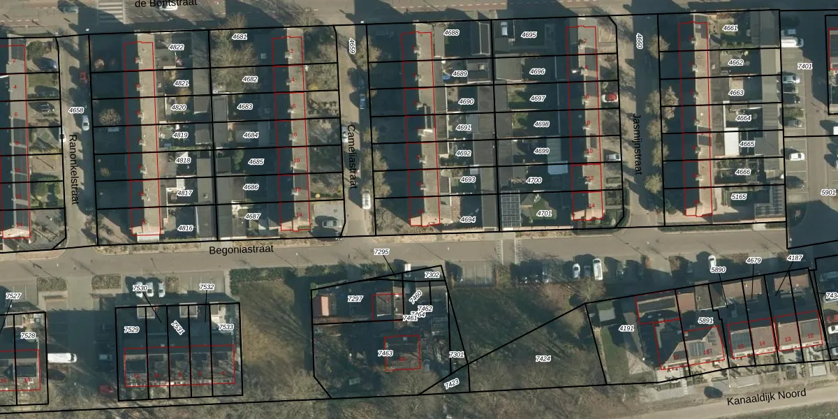 Gebruik de zoekbalk of klik op een perceel voor informatie over de adressen binnen dit perceel.