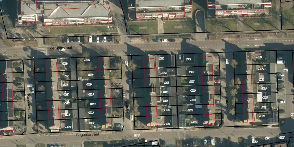Het perceel waarop Cameliastraat 3 staat heeft een oppervlakte van 194 m². Dit is een middelgroot perceel. De perceeloppervlakte wordt geregistreerd door het Kadaster. Gedetailleerde informatie over de maten van dit perceel kunt u vinden in het rapport Kadastrale kaart met maatvoering van Cameliastraat 3.