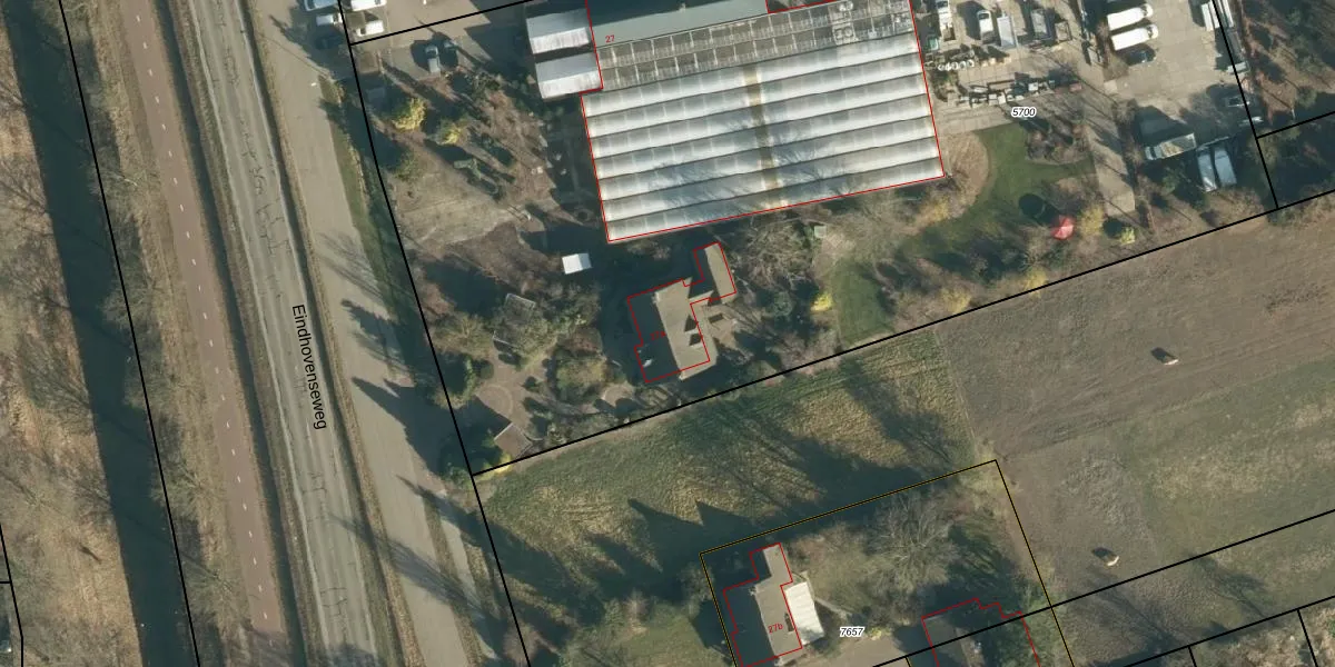 Eindhovenseweg 27-a is gelegen op kadastraal perceel SON00C5700. Deze kadastrale aanduiding is uniek en wordt gebruikt door het Kadaster om eigendomsrechten en andere zakelijke rechten vast te leggen. Het perceel maakt onderdeel uit van de kadastrale gemeente Son en Breugel.