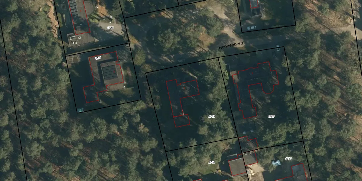 Het perceel waarop Hoogenberg 2 staat heeft een oppervlakte van 1855 m². Dit is een zeer groot perceel. De perceeloppervlakte wordt geregistreerd door het Kadaster. Gedetailleerde informatie over de maten van dit perceel kunt u vinden in het rapport Kadastrale kaart met maatvoering van Hoogenberg 2.