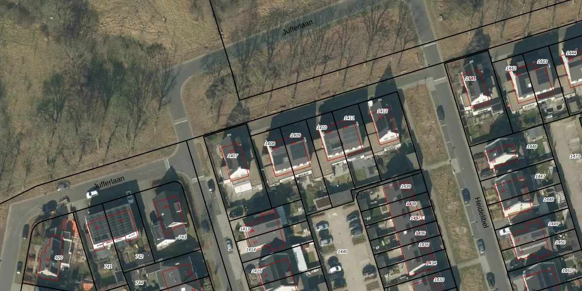 Jufferlaan 106 is gelegen op kadastraal perceel SON00G1409. Deze kadastrale aanduiding is uniek en wordt gebruikt door het Kadaster om eigendomsrechten en andere zakelijke rechten vast te leggen. Het perceel maakt onderdeel uit van de kadastrale gemeente Son en Breugel.