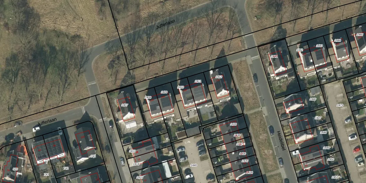 Jufferlaan 108 is gelegen op kadastraal perceel SON00G1410. Deze kadastrale aanduiding is uniek en wordt gebruikt door het Kadaster om eigendomsrechten en andere zakelijke rechten vast te leggen. Het perceel maakt onderdeel uit van de kadastrale gemeente Son en Breugel.