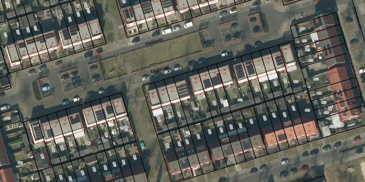 Het perceel waarop Meikever 21 staat heeft een oppervlakte van 392 m². Dit is een groot perceel. De perceeloppervlakte wordt geregistreerd door het Kadaster. Gedetailleerde informatie over de maten van dit perceel kunt u vinden in het rapport Kadastrale kaart met maatvoering van Meikever 21.