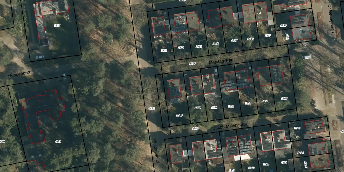 Het perceel waarop Mesdagstraat 13 staat heeft een oppervlakte van 372 m². Dit is een groot perceel. De perceeloppervlakte wordt geregistreerd door het Kadaster. Gedetailleerde informatie over de maten van dit perceel kunt u vinden in het rapport Kadastrale kaart met maatvoering van Mesdagstraat 13.