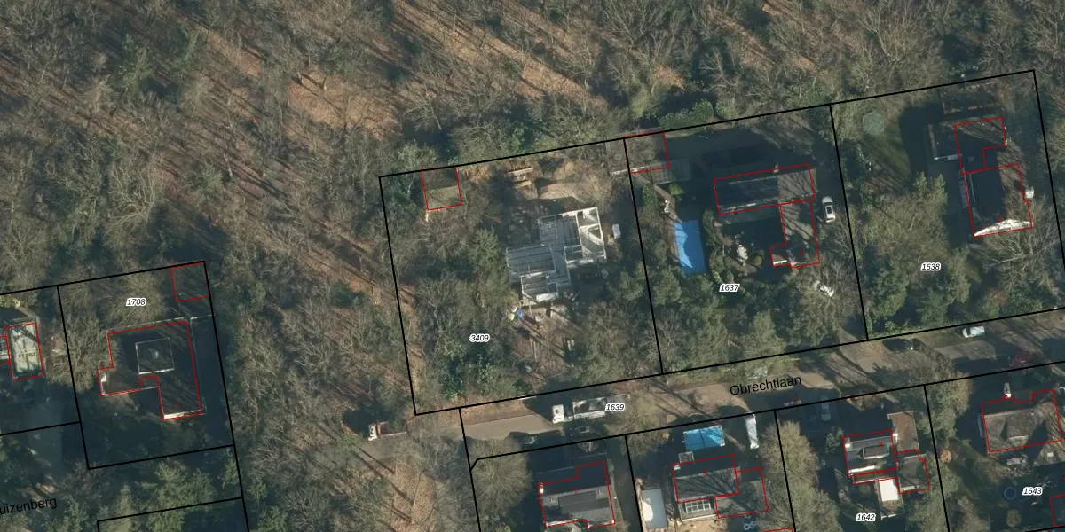 Het perceel waarop Obrechtlaan 6 staat heeft een oppervlakte van 2111 m². Dit is een zeer groot perceel. De perceeloppervlakte wordt geregistreerd door het Kadaster. Gedetailleerde informatie over de maten van dit perceel kunt u vinden in het rapport Kadastrale kaart met maatvoering van Obrechtlaan 6.