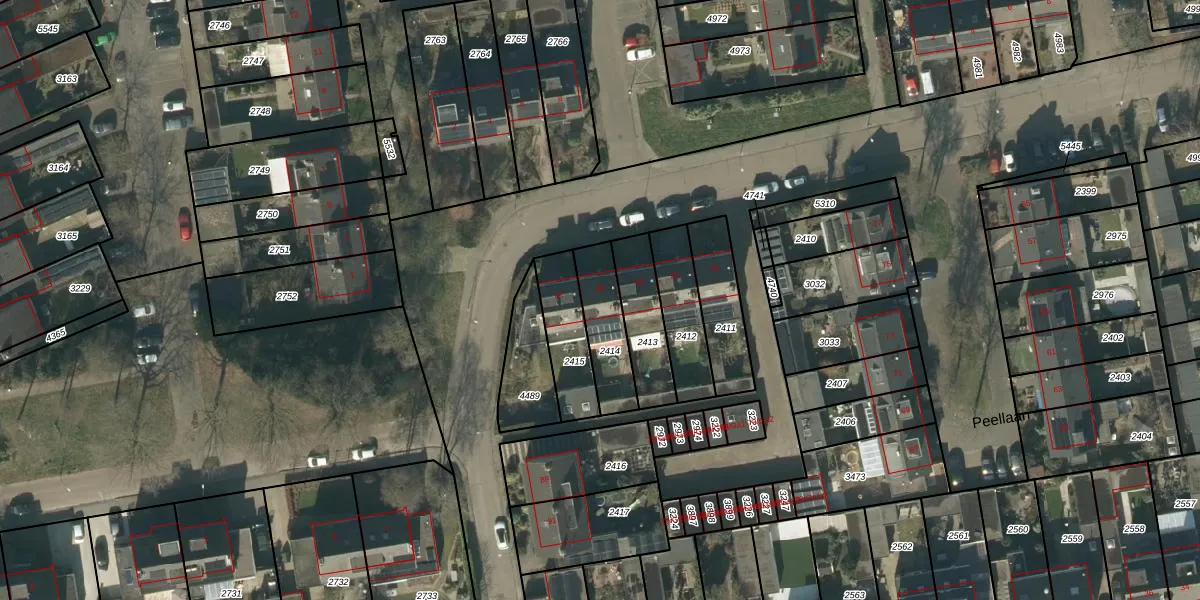 Het perceel waarop Peellaan 85 staat heeft een oppervlakte van 182 m². Dit is een middelgroot perceel. De perceeloppervlakte wordt geregistreerd door het Kadaster. Gedetailleerde informatie over de maten van dit perceel kunt u vinden in het rapport Kadastrale kaart met maatvoering van Peellaan 85.
