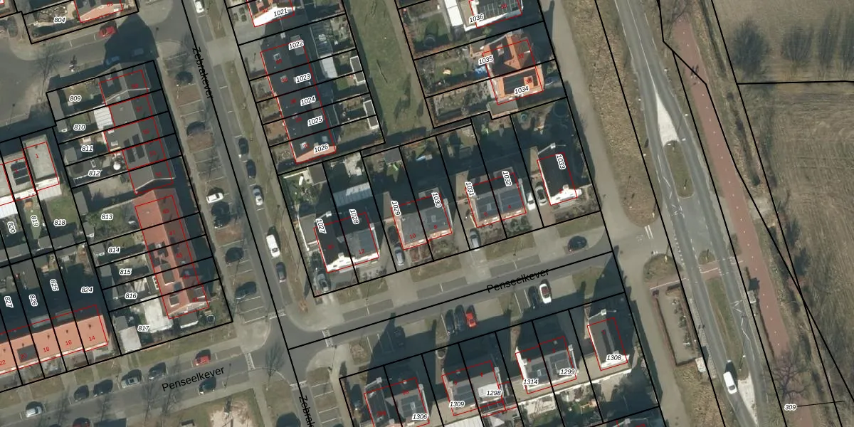 Penseelkever 8 is gelegen op kadastraal perceel SON00G1030. Deze kadastrale aanduiding is uniek en wordt gebruikt door het Kadaster om eigendomsrechten en andere zakelijke rechten vast te leggen. Het perceel maakt onderdeel uit van de kadastrale gemeente Son en Breugel.