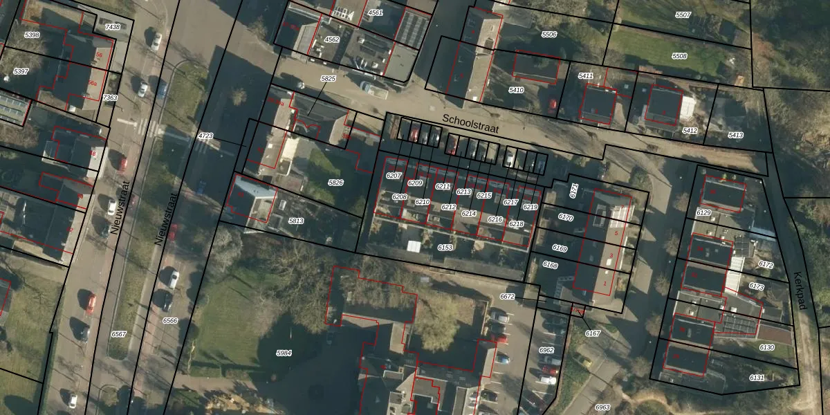 Het perceel waarop Schoolstraat 20 staat heeft een oppervlakte van 1009 m². Dit is een zeer groot perceel. De perceeloppervlakte wordt geregistreerd door het Kadaster. Gedetailleerde informatie over de maten van dit perceel kunt u vinden in het rapport Kadastrale kaart met maatvoering van Schoolstraat 20.