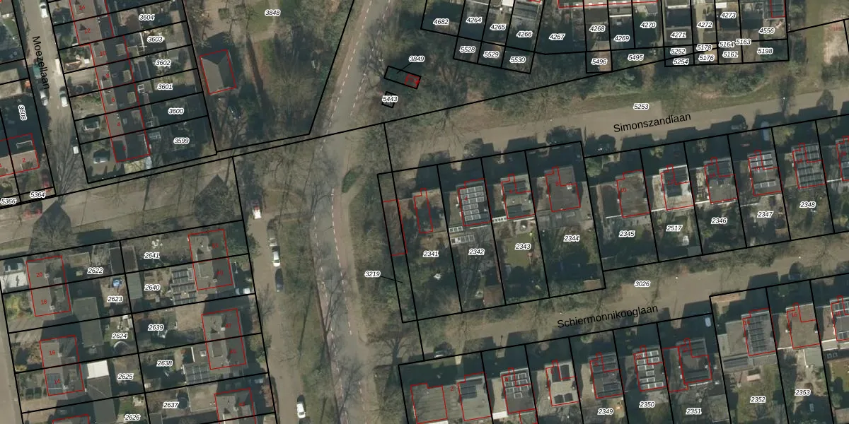 Het perceel waarop Simonszandlaan 2 staat heeft een oppervlakte van 377 m². Dit is een groot perceel. De perceeloppervlakte wordt geregistreerd door het Kadaster. Gedetailleerde informatie over de maten van dit perceel kunt u vinden in het rapport Kadastrale kaart met maatvoering van Simonszandlaan 2.
