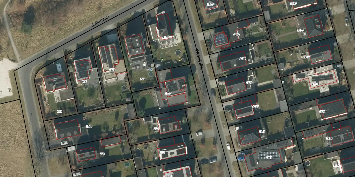 Het perceel waarop Waterjuffer 15 staat heeft een oppervlakte van 719 m². Dit is een groot perceel. De perceeloppervlakte wordt geregistreerd door het Kadaster. Gedetailleerde informatie over de maten van dit perceel kunt u vinden in het rapport Kadastrale kaart met maatvoering van Waterjuffer 15.