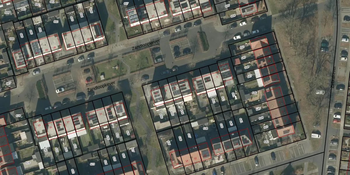 Gebruik de zoekbalk of klik op een perceel voor informatie over de adressen binnen dit perceel.