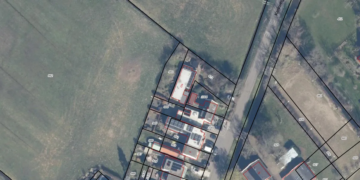 Kerkweg 12-a is gelegen op kadastraal perceel HLM04H871. Deze kadastrale aanduiding is uniek en wordt gebruikt door het Kadaster om eigendomsrechten en andere zakelijke rechten vast te leggen. Het perceel maakt onderdeel uit van de kadastrale gemeente Haarlemmerliede en Spaarnwoude.