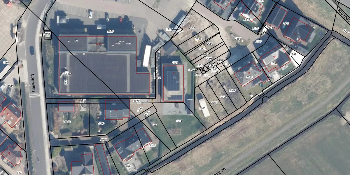 Lageweg 9 is gelegen op kadastraal perceel HLM04H1936. Deze kadastrale aanduiding is uniek en wordt gebruikt door het Kadaster om eigendomsrechten en andere zakelijke rechten vast te leggen. Het perceel maakt onderdeel uit van de kadastrale gemeente Haarlemmerliede en Spaarnwoude.