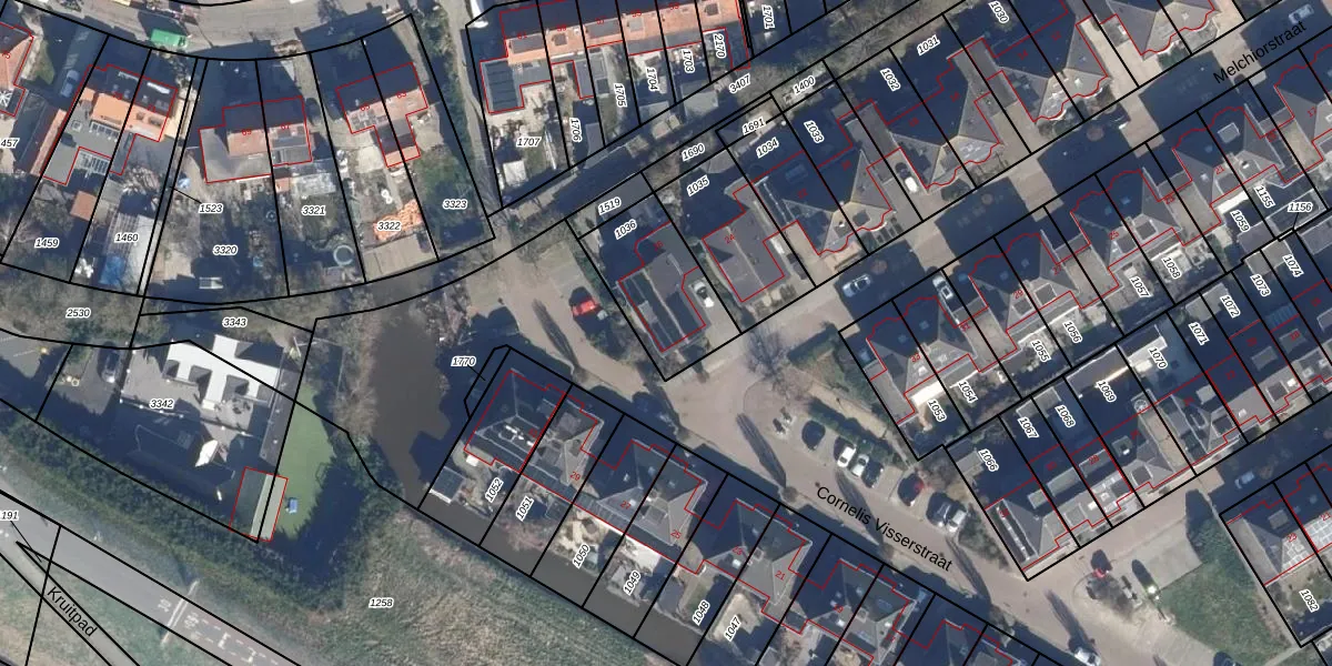 Het perceel waarop Melchiorstraat 26 staat heeft een oppervlakte van 340 m². Dit is een groot perceel. De perceeloppervlakte wordt geregistreerd door het Kadaster. Gedetailleerde informatie over de maten van dit perceel kunt u vinden in het rapport Kadastrale kaart met maatvoering van Melchiorstraat 26.