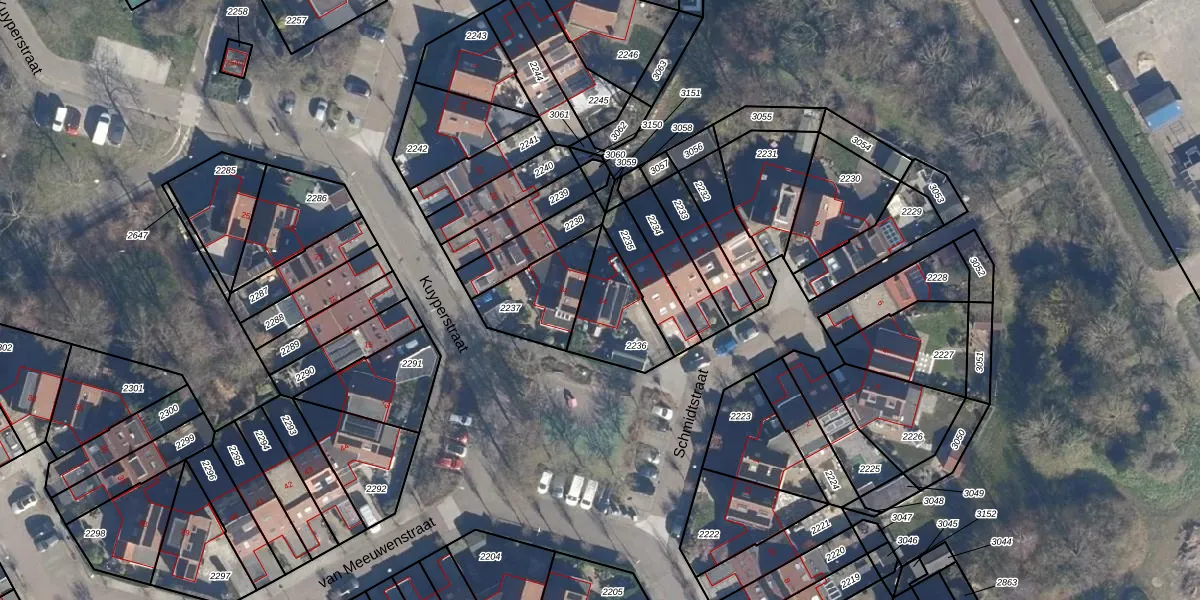 Het perceel waarop Schmidtstraat 14 staat heeft een oppervlakte van 222 m². Dit is een middelgroot perceel. De perceeloppervlakte wordt geregistreerd door het Kadaster. Gedetailleerde informatie over de maten van dit perceel kunt u vinden in het rapport Kadastrale kaart met maatvoering van Schmidtstraat 14.