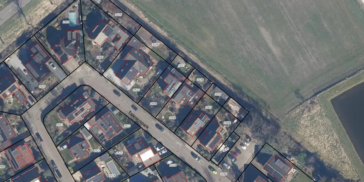 Het perceel waarop Talesiuspark 21 staat heeft een oppervlakte van 352 m². Dit is een groot perceel. De perceeloppervlakte wordt geregistreerd door het Kadaster. Gedetailleerde informatie over de maten van dit perceel kunt u vinden in het rapport Kadastrale kaart met maatvoering van Talesiuspark 21.