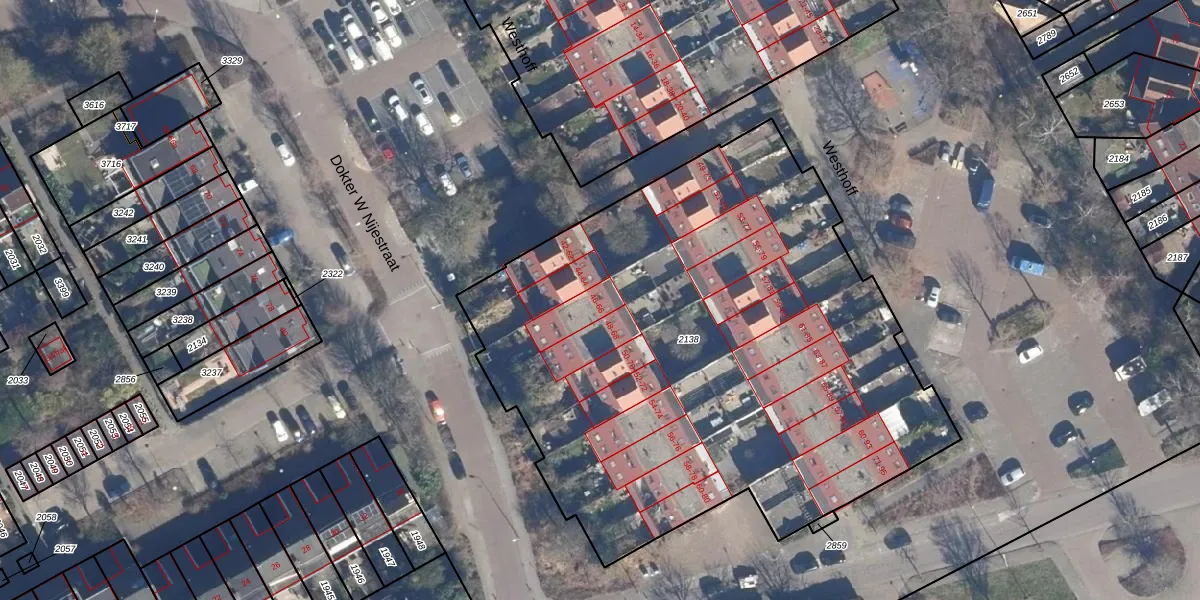 Het perceel waarop Westhoff 46 staat heeft een oppervlakte van 3600 m². Dit is een zeer groot perceel. De perceeloppervlakte wordt geregistreerd door het Kadaster. Gedetailleerde informatie over de maten van dit perceel kunt u vinden in het rapport Kadastrale kaart met maatvoering van Westhoff 46.