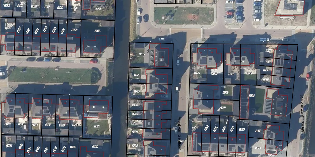 Gebruik de zoekbalk of klik op een perceel voor informatie over de adressen binnen dit perceel.