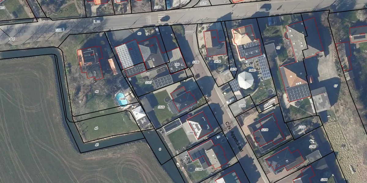 Het perceel waarop C.N. Appelstraat 2 staat heeft een oppervlakte van 604 m². Dit is een groot perceel. De perceeloppervlakte wordt geregistreerd door het Kadaster. Gedetailleerde informatie over de maten van dit perceel kunt u vinden in het rapport Kadastrale kaart met maatvoering van C.N. Appelstraat 2.