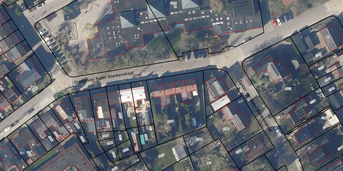 Dokter van Balen Blankenstraat 26 is gelegen op kadastraal perceel OMR01F2506. Deze kadastrale aanduiding is uniek en wordt gebruikt door het Kadaster om eigendomsrechten en andere zakelijke rechten vast te leggen. Het perceel maakt onderdeel uit van de kadastrale gemeente Opmeer.