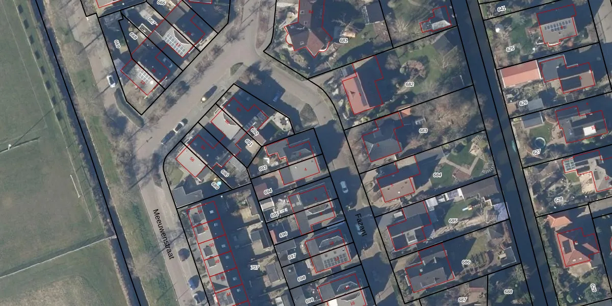 Gebruik de zoekbalk of klik op een perceel voor informatie over de adressen binnen dit perceel.