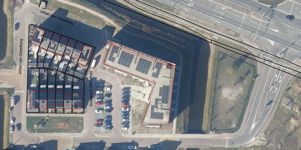 Het perceel waarop Johan van Gheelborg 66 staat heeft een oppervlakte van 6,3 ha. Dit is een zeer groot perceel. De perceeloppervlakte wordt geregistreerd door het Kadaster. Gedetailleerde informatie over de maten van dit perceel kunt u vinden in het rapport Kadastrale kaart met maatvoering van Johan van Gheelborg 66.
