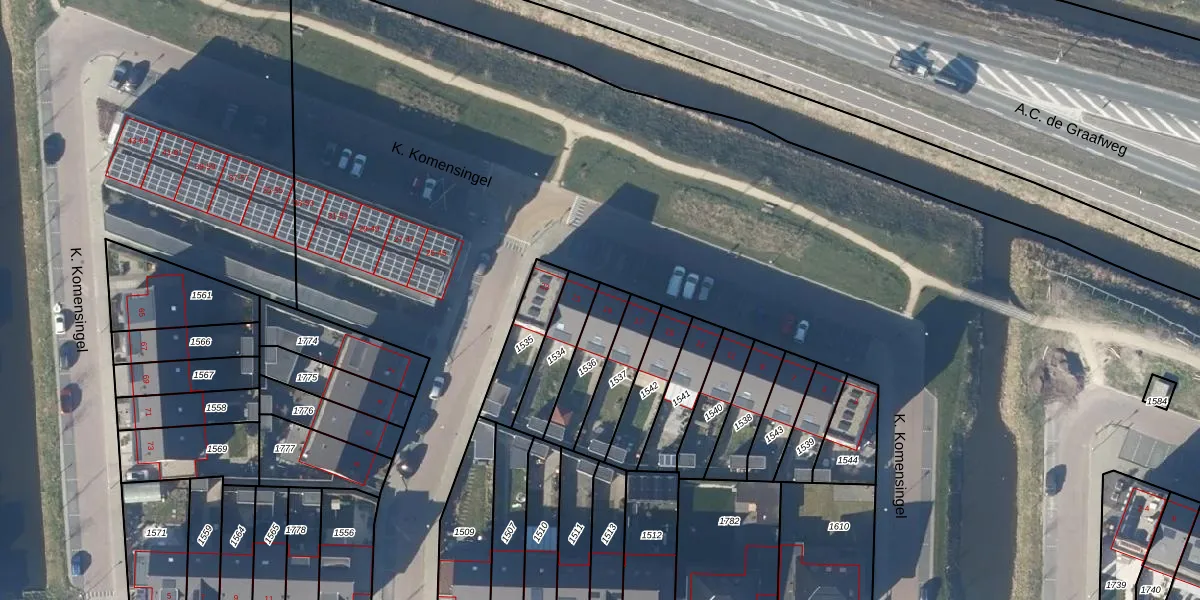 Het perceel waarop K. Komensingel 19 staat heeft een oppervlakte van 154 m². Dit is een middelgroot perceel. De perceeloppervlakte wordt geregistreerd door het Kadaster. Gedetailleerde informatie over de maten van dit perceel kunt u vinden in het rapport Kadastrale kaart met maatvoering van K. Komensingel 19.