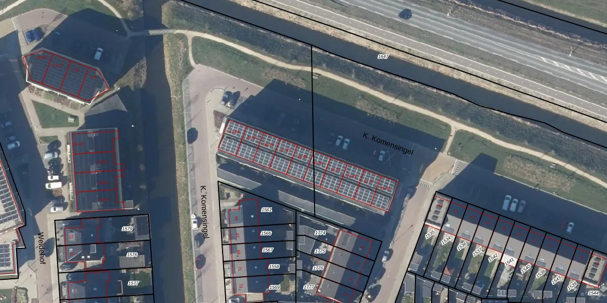 Het perceel waarop K. Komensingel 35 staat heeft een oppervlakte van 4,8 ha. Dit is een zeer groot perceel. De perceeloppervlakte wordt geregistreerd door het Kadaster. Gedetailleerde informatie over de maten van dit perceel kunt u vinden in het rapport Kadastrale kaart met maatvoering van K. Komensingel 35.
