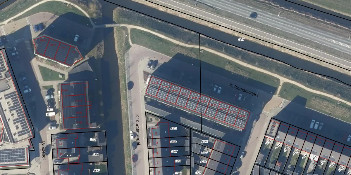 Het perceel waarop K. Komensingel 39 staat heeft een oppervlakte van 4,8 ha. Dit is een zeer groot perceel. De perceeloppervlakte wordt geregistreerd door het Kadaster. Gedetailleerde informatie over de maten van dit perceel kunt u vinden in het rapport Kadastrale kaart met maatvoering van K. Komensingel 39.