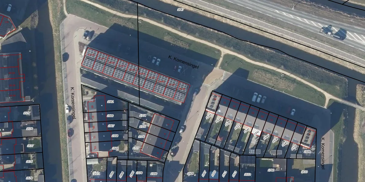 Het perceel waarop K. Komensingel 45 staat heeft een oppervlakte van 6,3 ha. Dit is een zeer groot perceel. De perceeloppervlakte wordt geregistreerd door het Kadaster. Gedetailleerde informatie over de maten van dit perceel kunt u vinden in het rapport Kadastrale kaart met maatvoering van K. Komensingel 45.