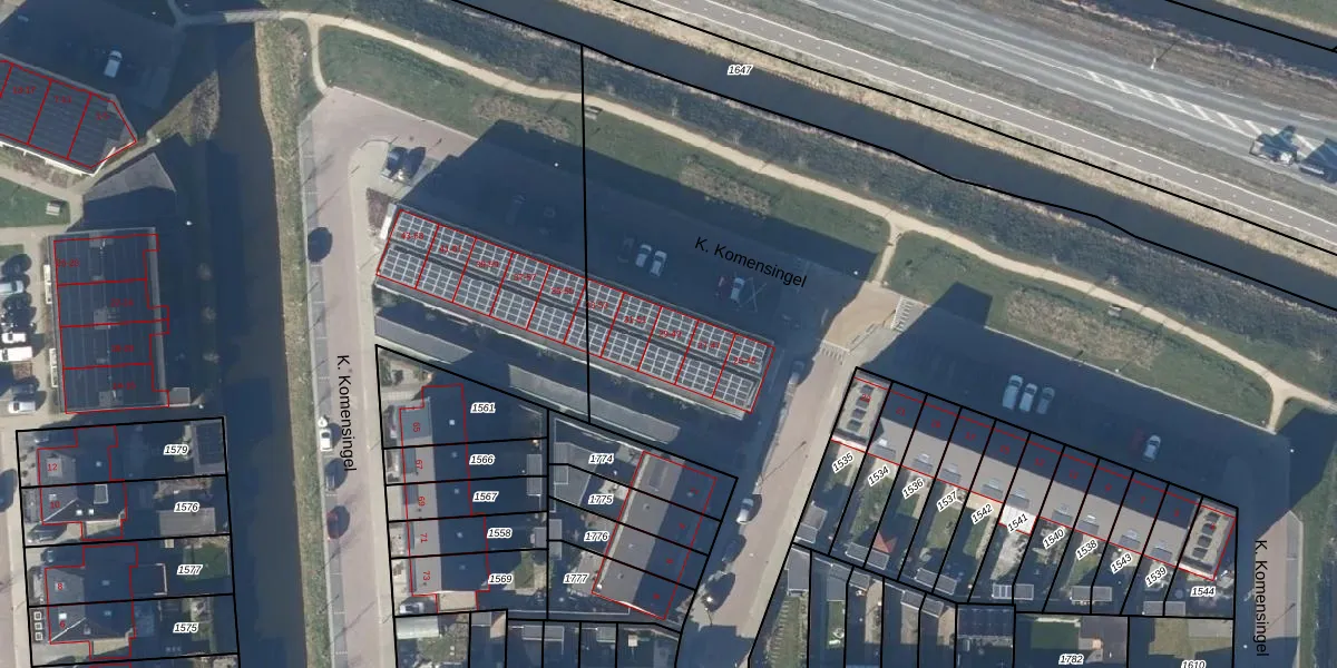 Het perceel waarop K. Komensingel 49 staat heeft een oppervlakte van 6,3 ha. Dit is een zeer groot perceel. De perceeloppervlakte wordt geregistreerd door het Kadaster. Gedetailleerde informatie over de maten van dit perceel kunt u vinden in het rapport Kadastrale kaart met maatvoering van K. Komensingel 49.