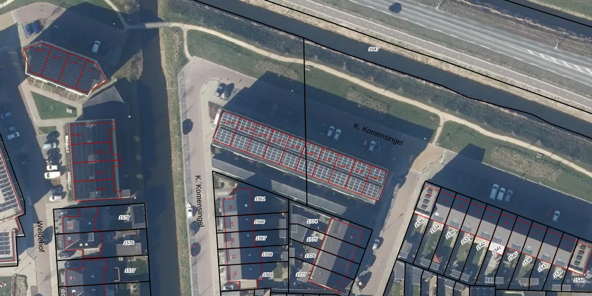 Het perceel waarop K. Komensingel 55 staat heeft een oppervlakte van 4,8 ha. Dit is een zeer groot perceel. De perceeloppervlakte wordt geregistreerd door het Kadaster. Gedetailleerde informatie over de maten van dit perceel kunt u vinden in het rapport Kadastrale kaart met maatvoering van K. Komensingel 55.