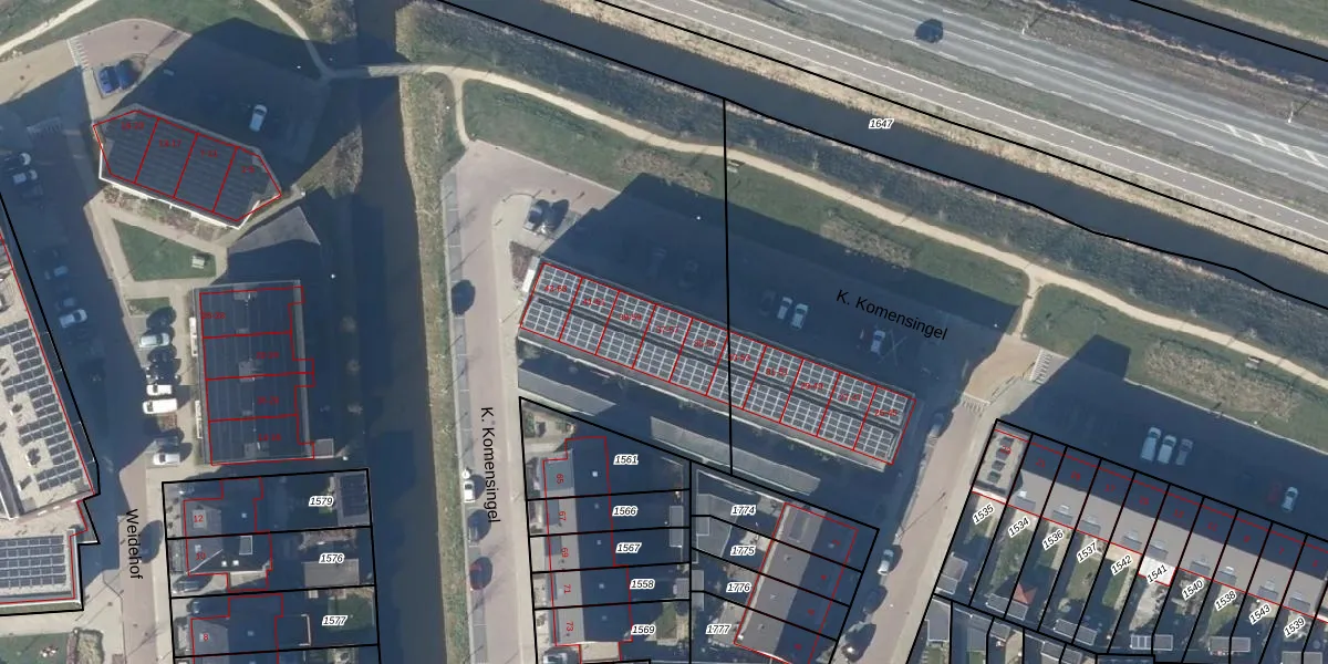 Het perceel waarop K. Komensingel 57 staat heeft een oppervlakte van 4,8 ha. Dit is een zeer groot perceel. De perceeloppervlakte wordt geregistreerd door het Kadaster. Gedetailleerde informatie over de maten van dit perceel kunt u vinden in het rapport Kadastrale kaart met maatvoering van K. Komensingel 57.