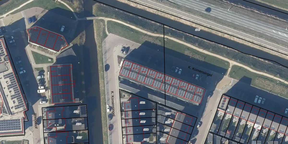 Het perceel waarop K. Komensingel 59 staat heeft een oppervlakte van 4,8 ha. Dit is een zeer groot perceel. De perceeloppervlakte wordt geregistreerd door het Kadaster. Gedetailleerde informatie over de maten van dit perceel kunt u vinden in het rapport Kadastrale kaart met maatvoering van K. Komensingel 59.